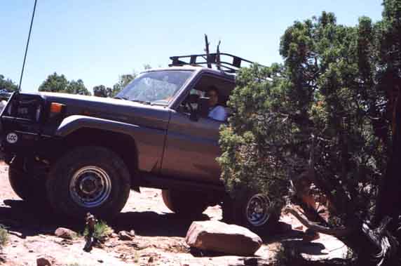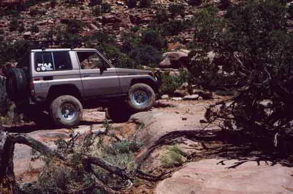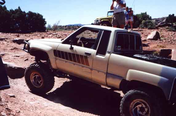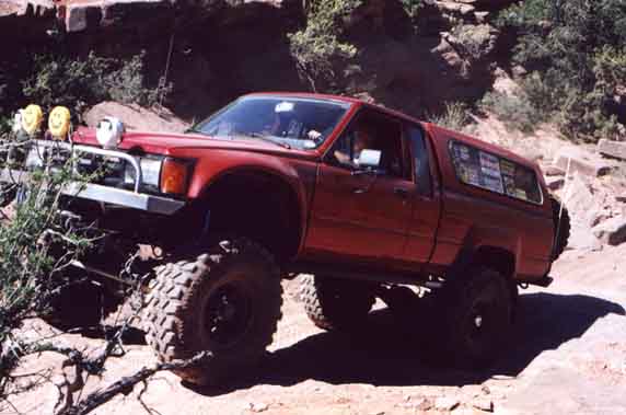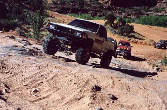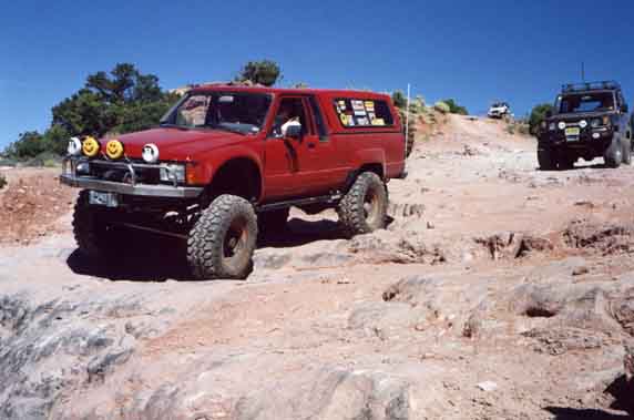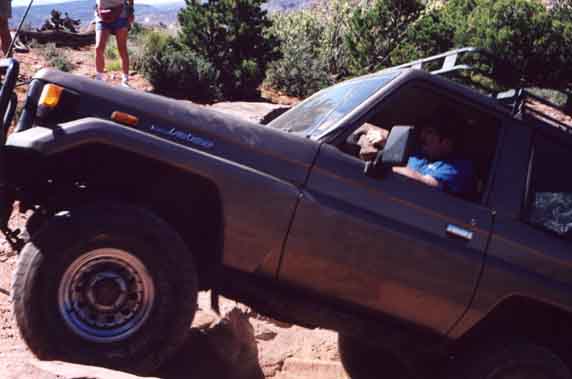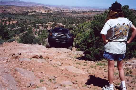 Rich Mader's marlin equipped mini prepares to decend a steep ledge. No this wasn't the one that bit my tail lights...that was later :-)
