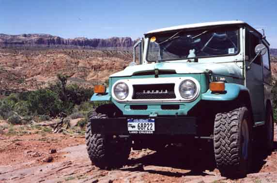 Our Trail leader was fellow Rising Sun member Mike Aaron in the "Uglibus", his FJ55. Bruce Westlund and his wife Heather would be our gunner, in his '68 SO'd FJ40, "Jethro". Jethro had already donated a stock air cleaner housing to my rig so I could convert back to the stock carb from the Holley that was in it when I bought it. Little did I know that Jethro would end up donating a few more parts...