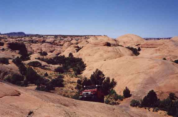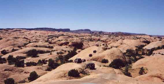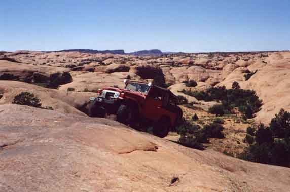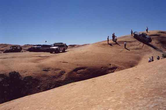 This is just one of those really cool views, with the Land Cruisers crawling along the red slickrock and mother nature just being beautiful