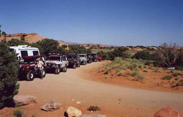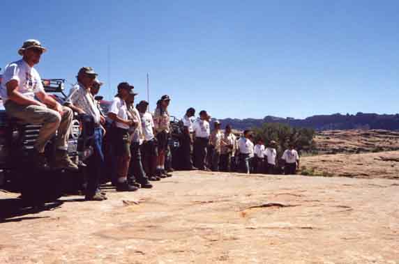 This is the first day of the official expedition of the Expedicions de la Velancia, Mesa America 2000, by the first South American Toyota Land Cruiser Association chapter. They had their trucks shipped from Venezuela to Houston, then drove them to Moab. But Moab was their official start, from there they would drive all the way back to Venezuela.