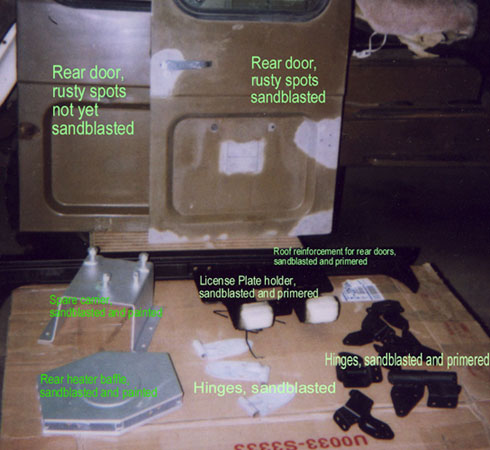 The next step was to remove the rear doors. There is no metal left where the strike for the latch used to be, so they have been held shut with bungee cords for the last several years.