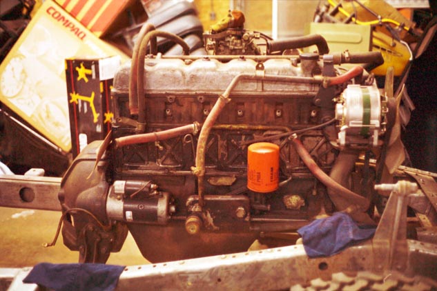 January 2001. Work on the restoration had to be postponed (again!) to turn attention to "Charlotte", my 1971 FJ40. It still was knocking (see my write up replacing the cam shaft, elsewhere on this site), was burning quite a bit of oil, had low oil pressure and low compression. I decided to replace it with another used F engine before it threw a rod or became otherwise unrebuildable. A suitable doner was procurred from Jeff Blumenthal of Austin TX, who was doing a V8 swap in his 1/17 FJ40. With only 2 months difference between the two powerplants it would bolt right in with no modifications.