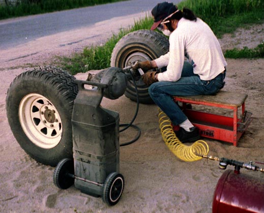 Here you see how I got the Zero Rust inside the frame rails. Learning from advice I had seen on the Land Cruiser Mailing List, I used a toilet bowl brush. It worked great, and I feel confident that I got everything inside those rails with a good couple of coats. Should last for a very, very long time.