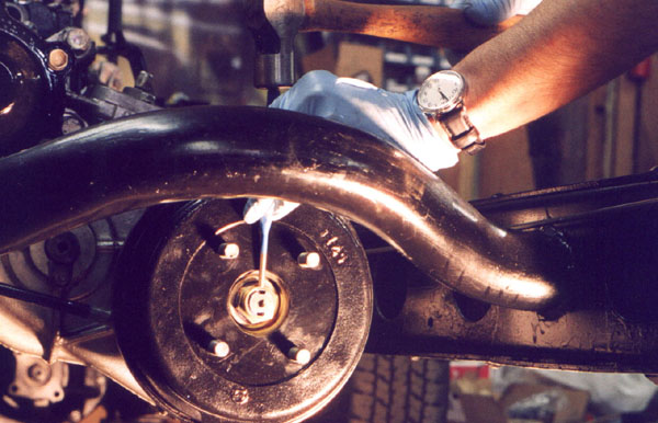 First off, I pulled the rag joint off the worm gear shaft. A two jaw puller works great for this. Yes, thats a Molsen in the background. My GWN friends would take me oot and shoot me for drinking crappy beer, eh, but it was actually there to catch brake fluid. Take off you hoser!
