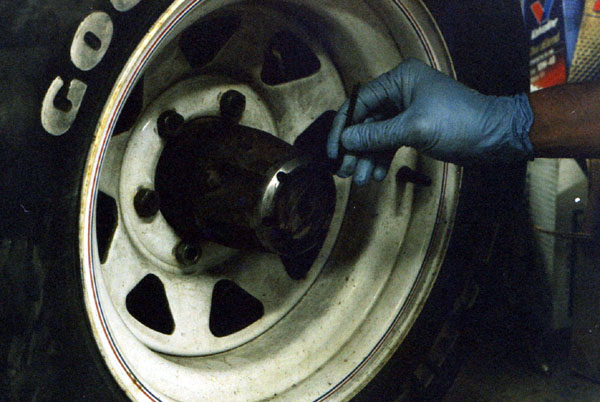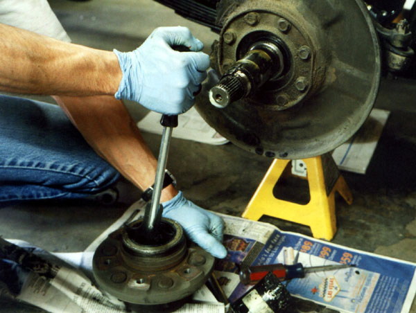 Next, I use my seal puller to pull the inner grease seal from the hub.