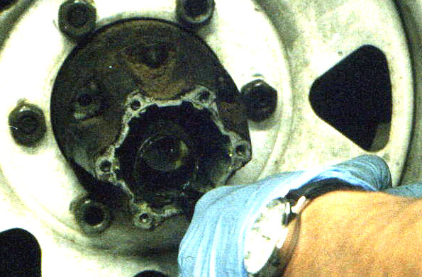 Now the brake rotor is unbolted from the hub.