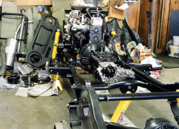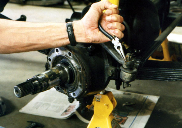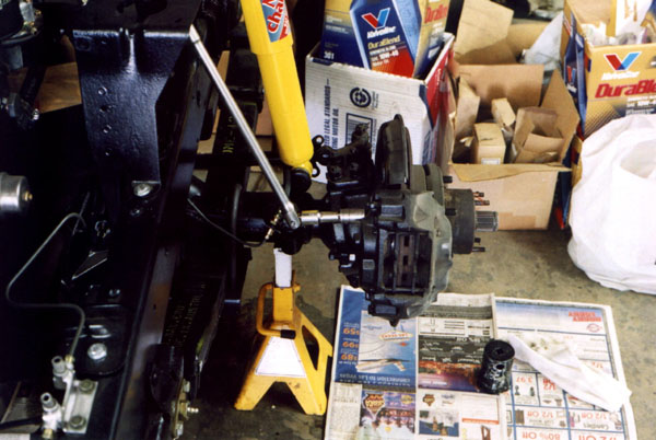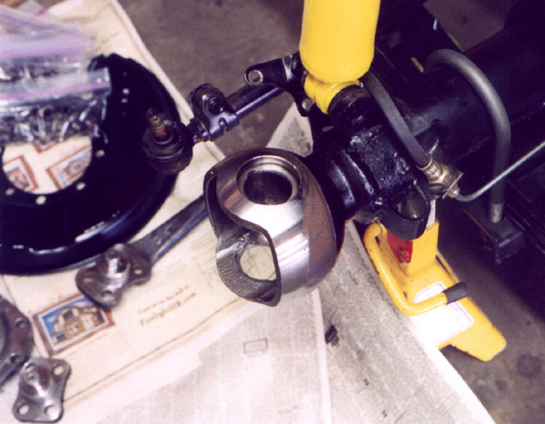 People have commented to me that it must take a lot of extra time to take all these photos instead of just going about the work. It does. And what takes even more time, is cleaning all these parts up, wirewheeling them, masking, and painting multiple coats on all sides. If you were just going to rebuild and do a quick cleaning in the parts sink it would have taken far less time. As it was, this whole front end job took several weekends. And here it is, Labor Day weekend 2003, and I am waiting for paint to dry on the rear brake backing plates as I write this page. Hopefully I will get the rear brakes and differential done this weekend.