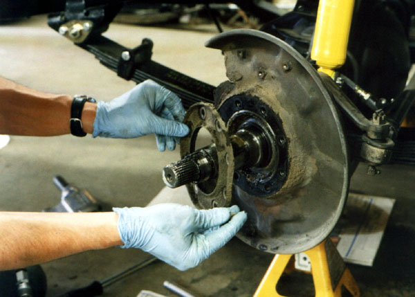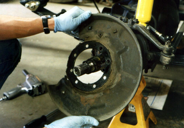 Next the brake backing plate can be removed over the spindle.