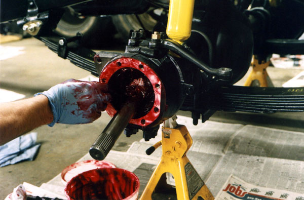 The differential is cleaned thoroughly in the parts sink.