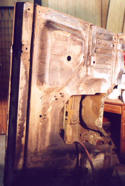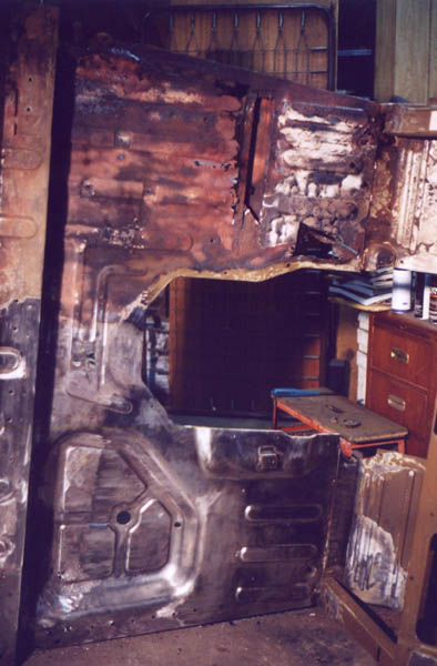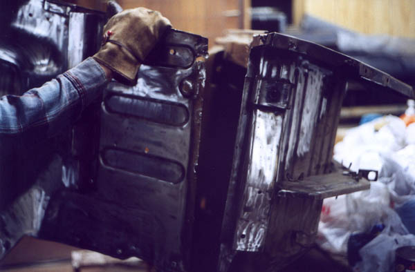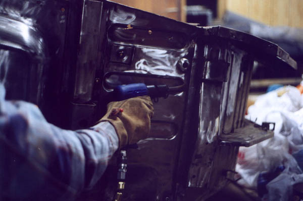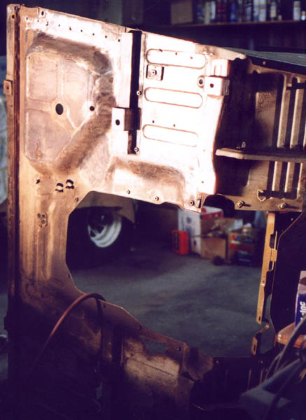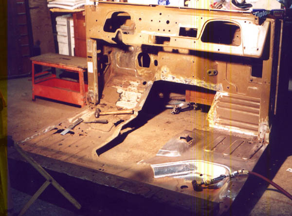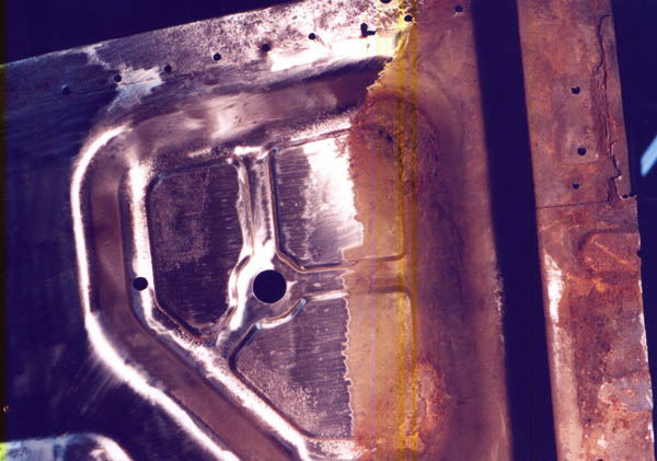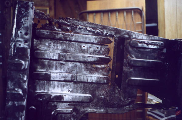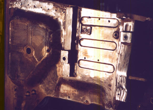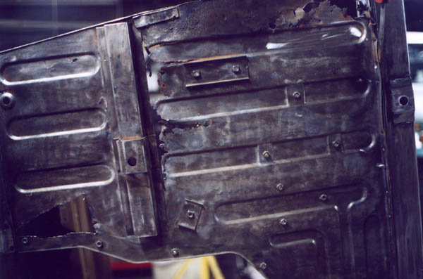 A view of the inderside of the cowl now that the entire floor pan has been separated from it.