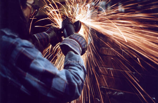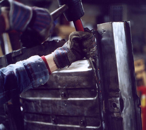 After the spot welds were drilled out and ground down the metal still needed to be separated. I started out using a regular hammer and chisel.