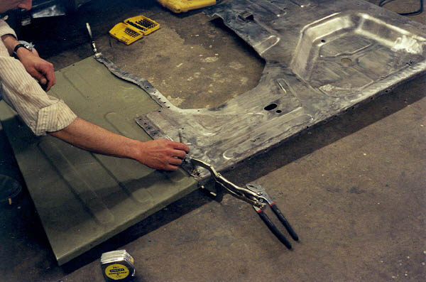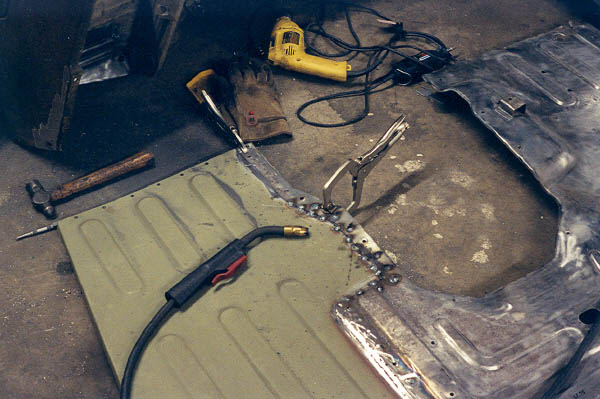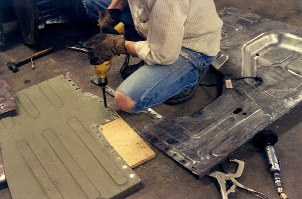 Now that the parts for the floor pan were cut to fit, I drilled out holes which were supposed to emulate the factory resistance spot welds on a lap joint when MIG welded. This was a suggestion from my local body shop guys.