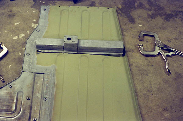 Next I lined evrything up again and clamped it down with the c-clamp vice grips and took a deep breath. This was it. If I screwed this alignment up the whole rest of the body might be a real PITA. This is my first try at this, go easy!
