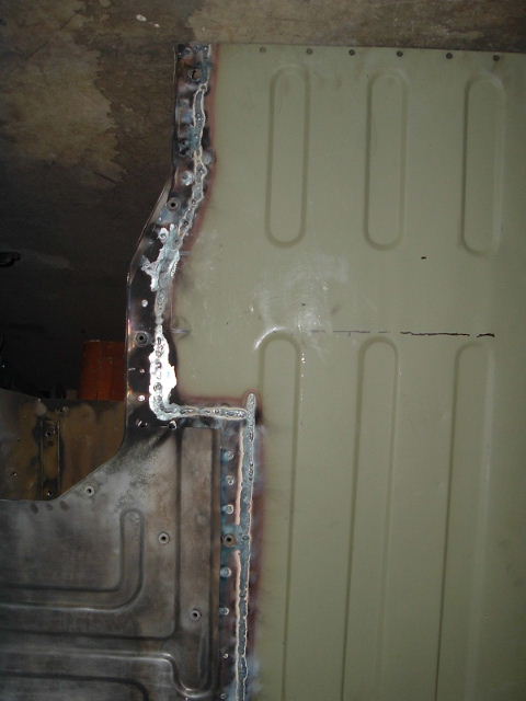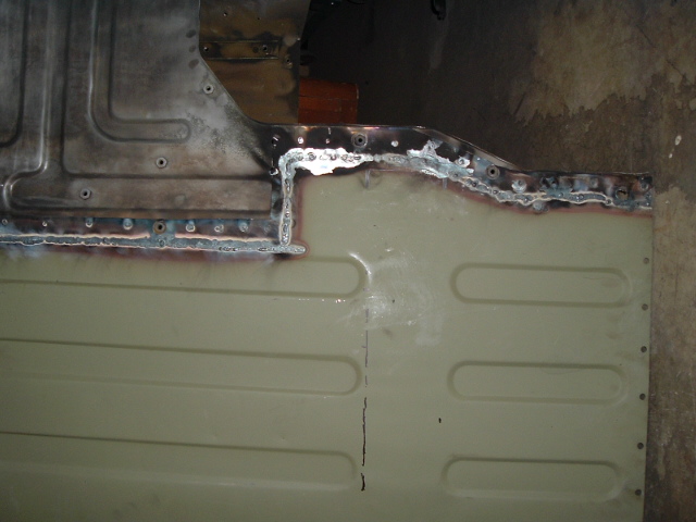 After grinding down the welds, it actually turned out pretty good. The welds had good penetration and once ground a bit, looked halfway decent. This was good practice. If these didn't turn out so good, at least no one can see these, being on the floor pan and all.