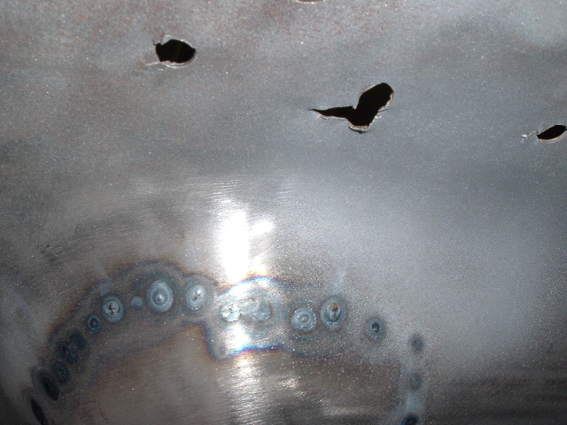 Below you can see the finished welds. This time I didn't get carried away, and only welded where the holes were. No warpage, good structural weld.