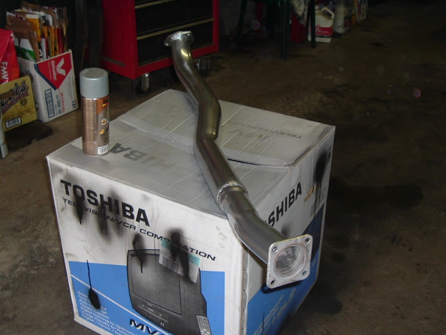 And somewhere in all this, I managed to put a couple coats of high temperature ceramic paint on my downpipe. The double walled pipes are made of unobtainium, and after I found out I couldn't replace it with either new or aftermarket, I sandblasted it and then painted it.