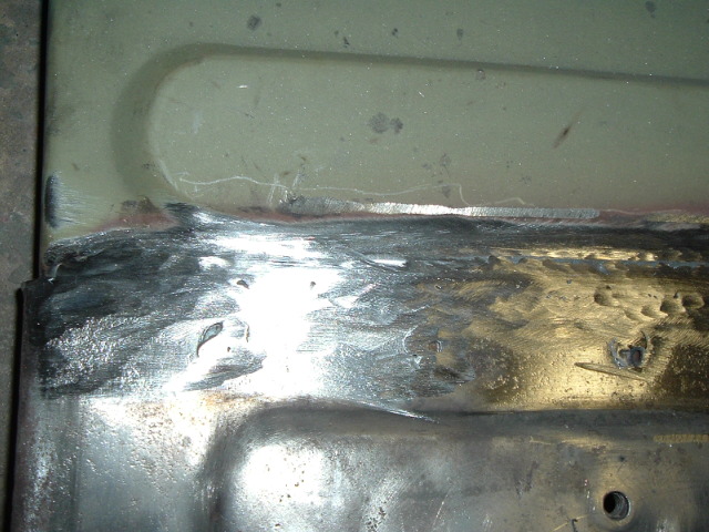 After a little work with the angle grinder, the spot welds are ground down flat and it will be ready for priming.