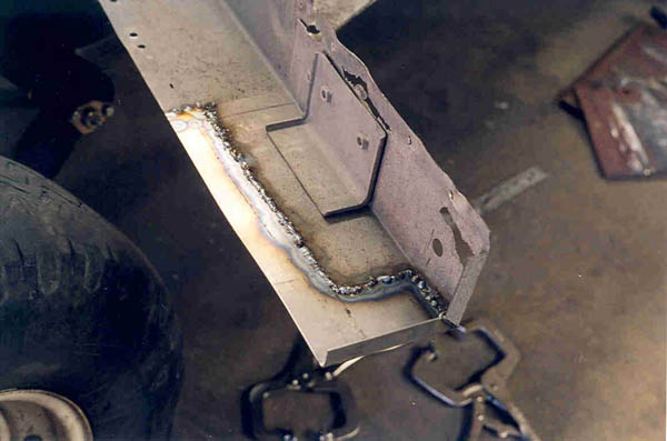 Here's what that piece looks like on the back side. Since this is on the inside of the box section and will never be seen, I left the welds as they were and didn't grind them down.