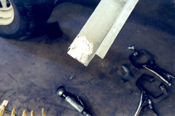 Next there's a little square of cancer that I cut out, measured and cut a replacement piece, clamped and welded in.