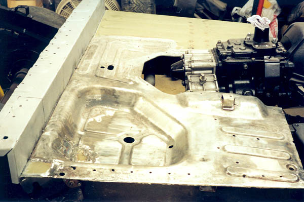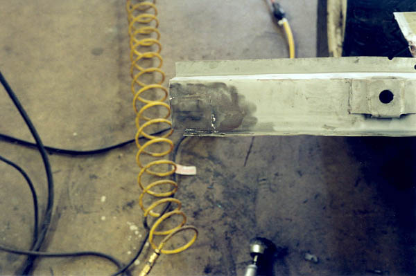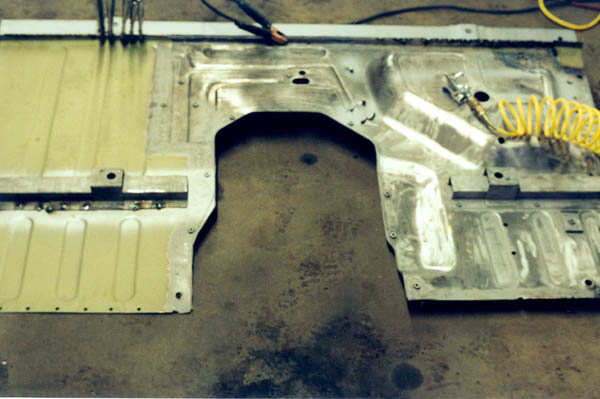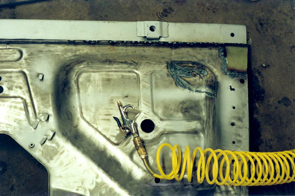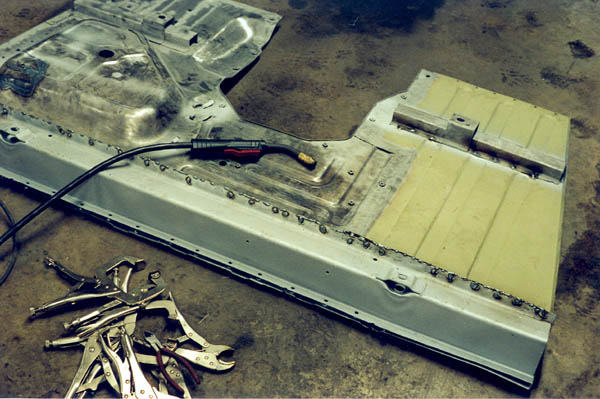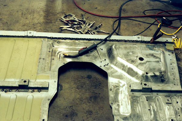 After welding in between the little spots until they pretty much make one long seam, but without warping it like I did with the floorpans, then I grind it down flat. After grinding, this is what it looks like: