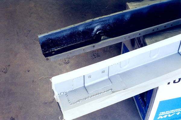 After grinding down the welds flush on the side where you will see, and cleaning everything up, I painted with zero rust on the parts masked away from future welds, and painted with the galvanizing compound, masked on the edges where I know they will be welded together.