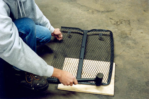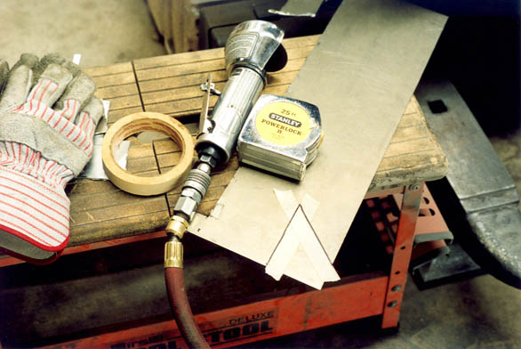 Besides all the body work, there's still plenty of detail to do. Below, I had to tap the bent radiator louver back into shape with my shot filled rubber mallet on a piece of flat wood. Then it is painted.