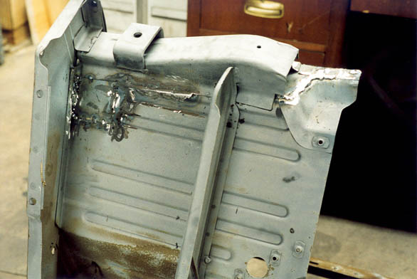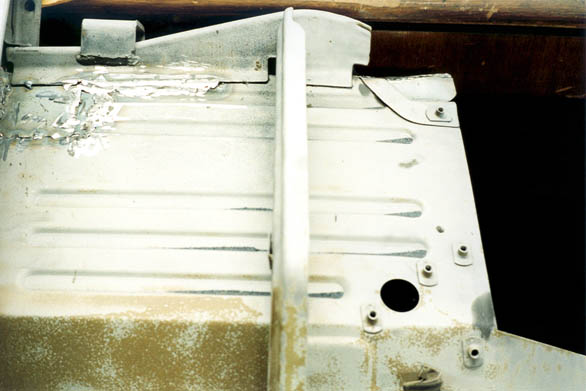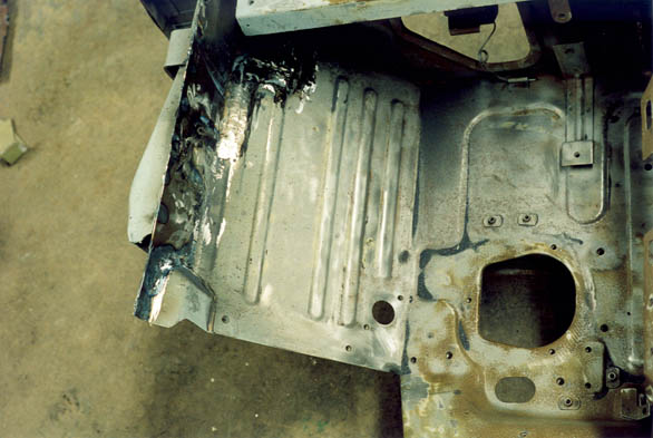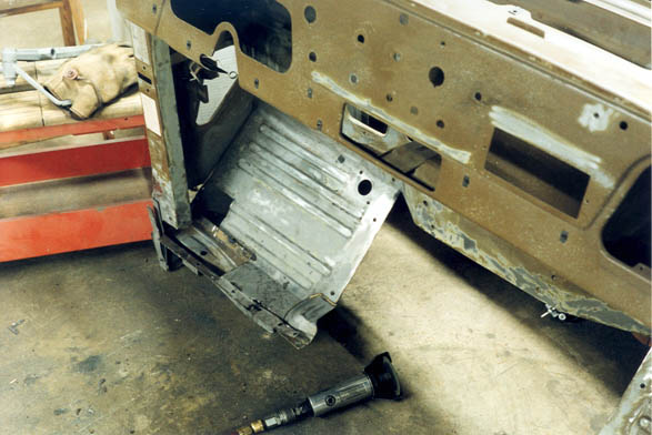 I cut the rotted sections out from the lower left of the driver's side of the bottom of the firewall.