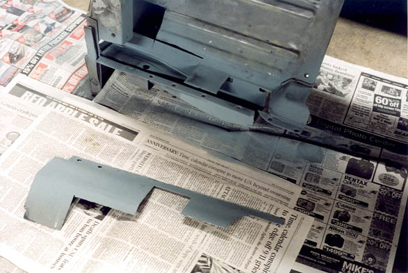 Both sides of the new piece, along with the entire area where it will be welded are painted with the zinc paint.