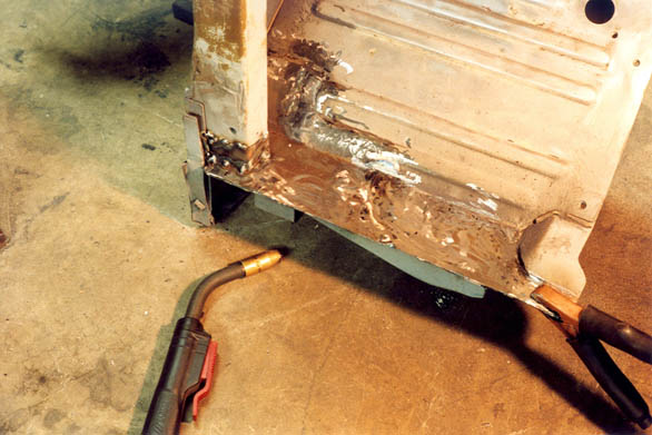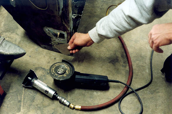 Last, the welds are ground down flush. I come back later with some body filler to smooth it out. Fill, sand, fill, sand, repeat until you can't tell it's there.