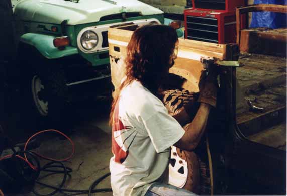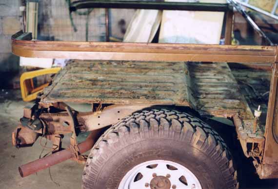 After the fender wells are out. They weren't held on by much, but the last little bit had to be cut with a cold chisel. Probably could have used an air hammer...you can see how bad the rear bed is rusted in this shot too.