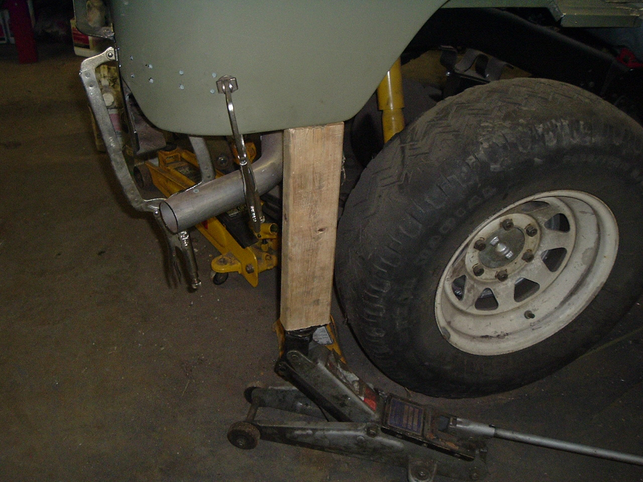 To get everything to line up, I jacked up the corner with a 2x4, then clamped it to the sill wings with the big c-clamp vice grips.