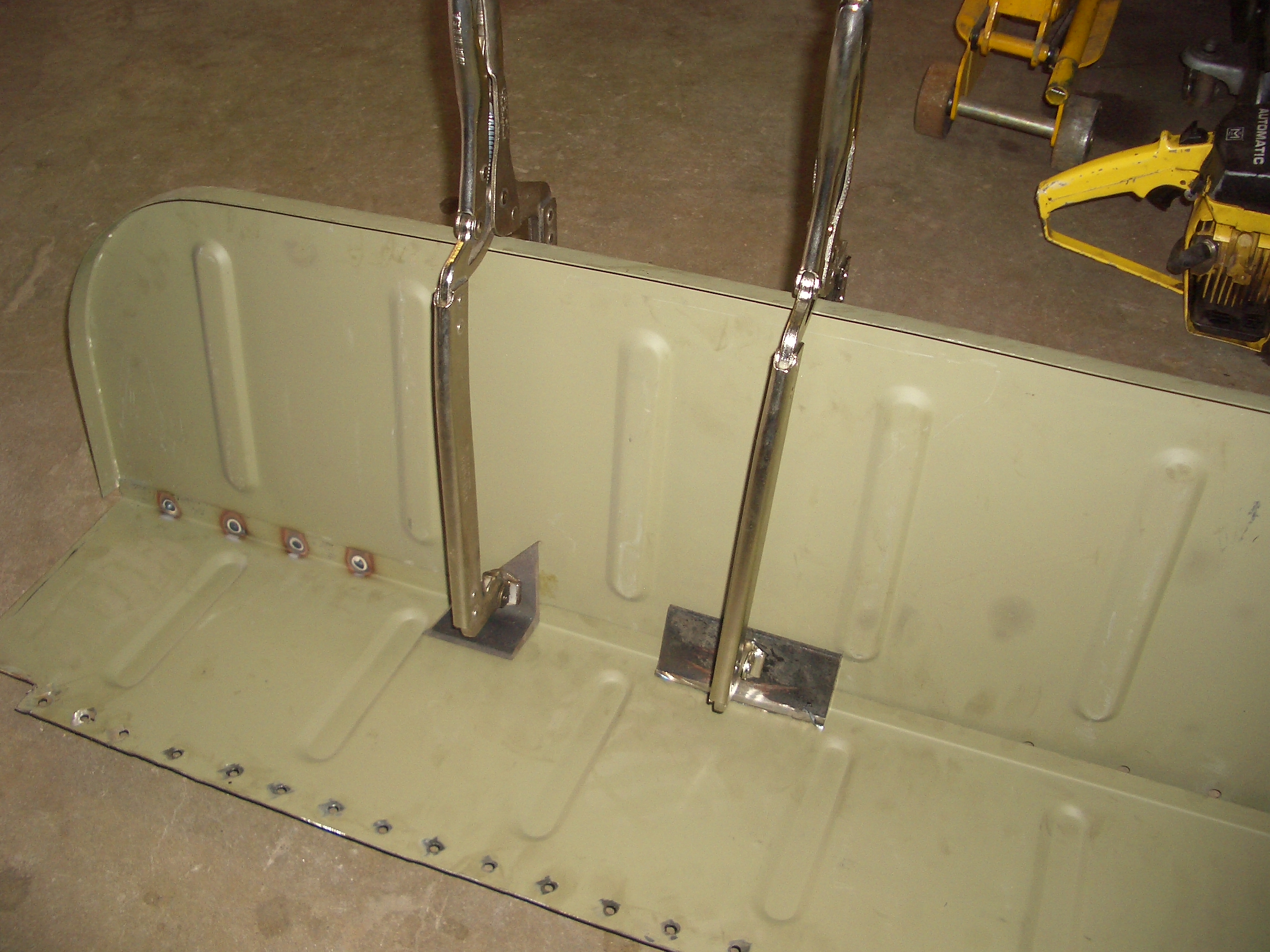 With the quarter panels welded in, the next step would be assembling the fender wells. After bending the fender well top, I clamped it to the inside panel.
