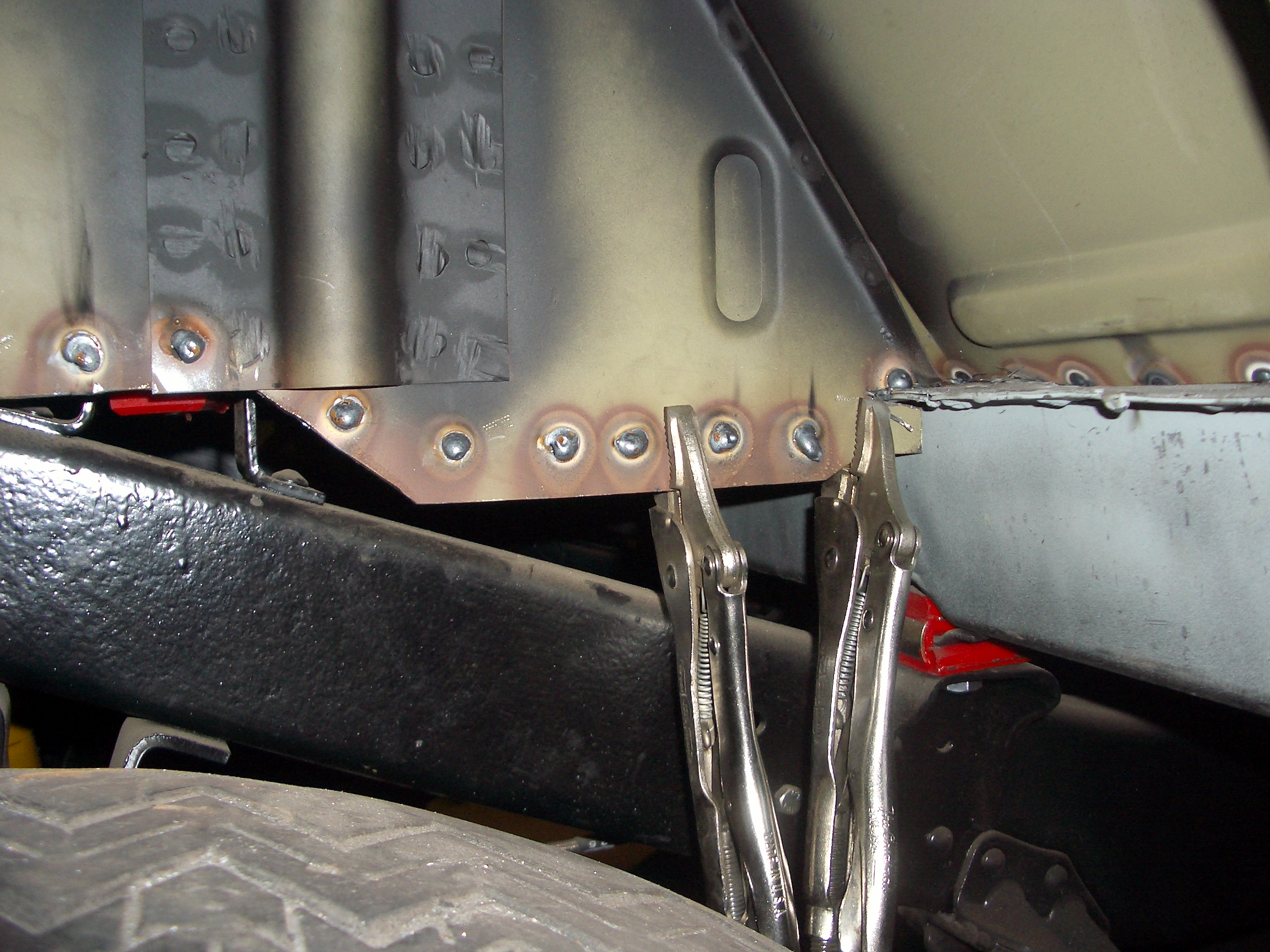 As with the other pieces, I drilled holes to weld into to simulate the factory resistance welds.