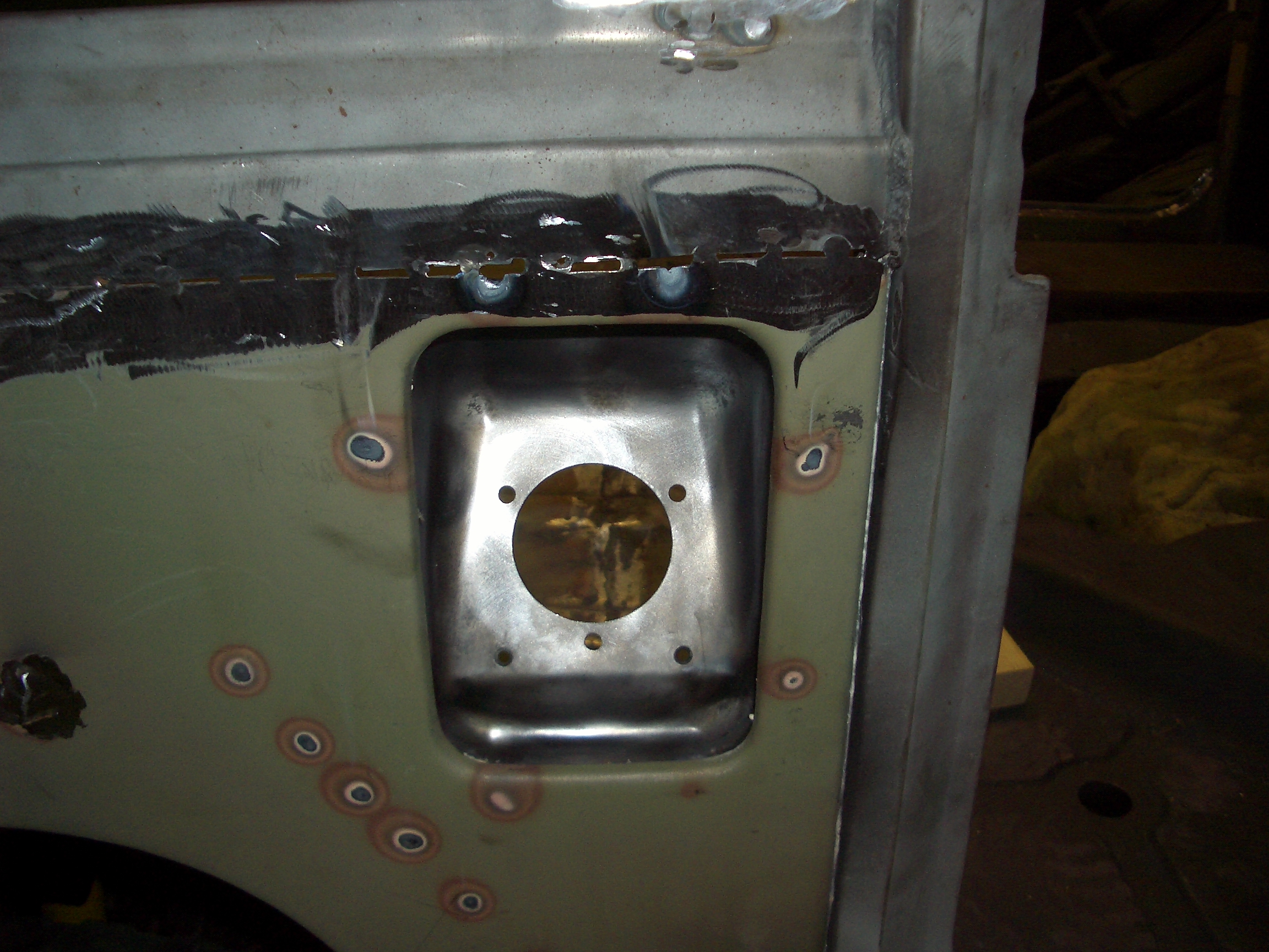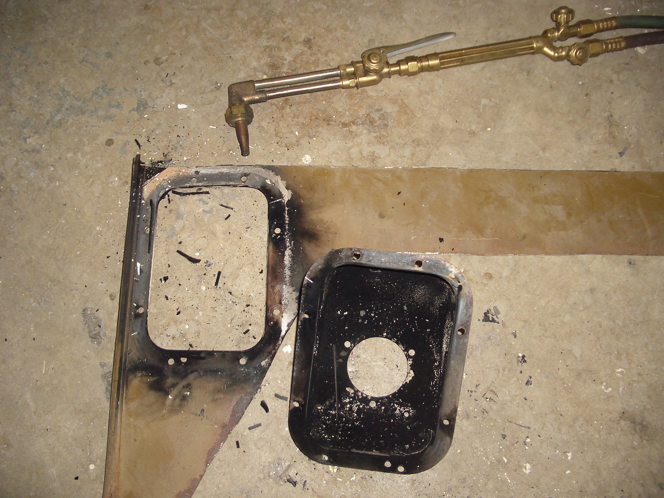 Once the fender wells were installed, one of the final touches was the fuel filler recess. I tried to drill out the factory spot welds but there was still some holding it together so I used the O-A torch to finish getting it off the old quarter panel.