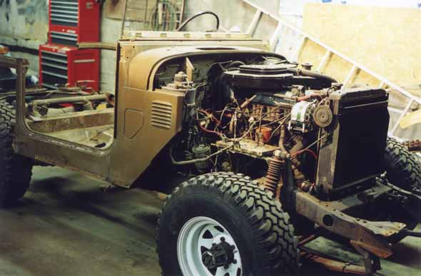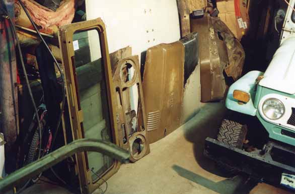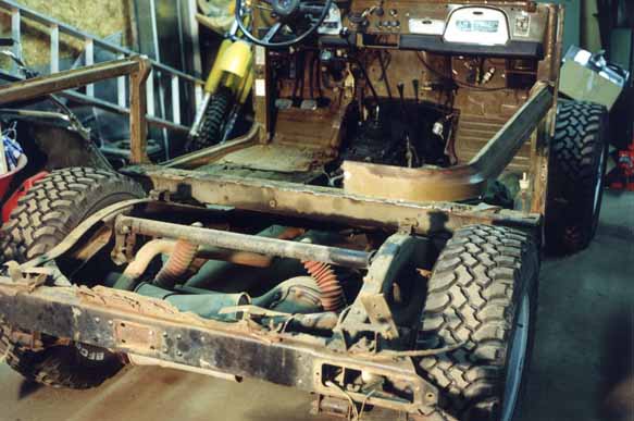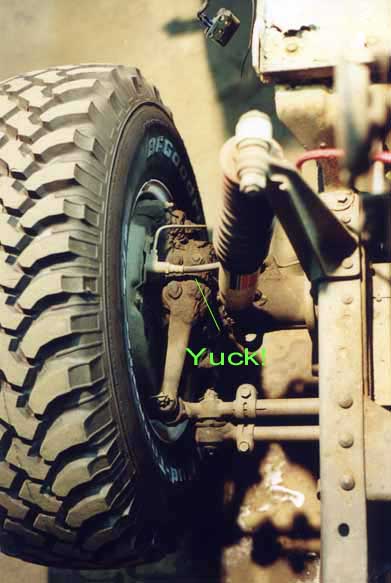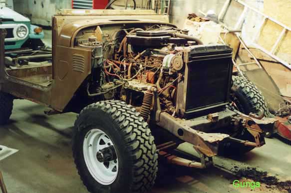 and fenders gives my beloved Land Cruiser a "monster" look according to one of my friends! Must be that horn on the side of the radiator that looks like an eye! I pushed it back a little to get the shot of the front end, you can just see the pile of gunga on the floor in front of the driver's side wheel.