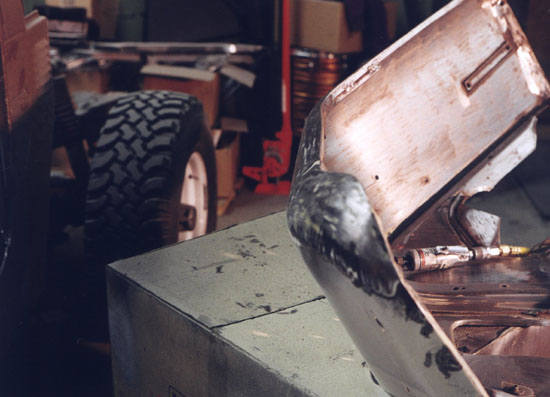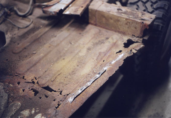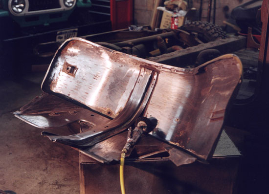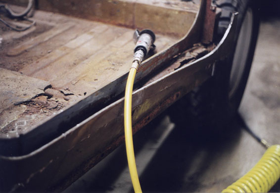 Cutting the rest of the driver's side rocker panels off from the floorboards. These parts will be discarded and replced with the new metal from CCOT.