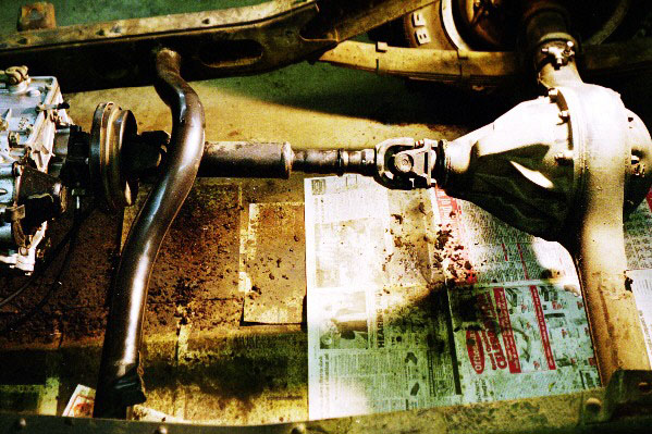 This brings us to the end of the summer. Wayne Puffer is a cruiserhead from New York who is in town for a few weeks on assignmemnt from his employer, and comes over to help out. We set out to work, with Wayne helping removing the driveshafts.