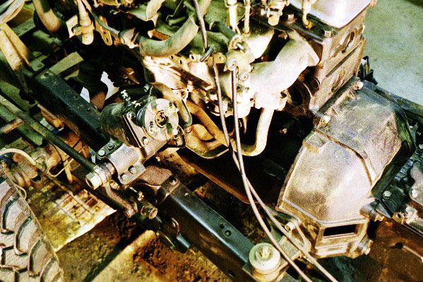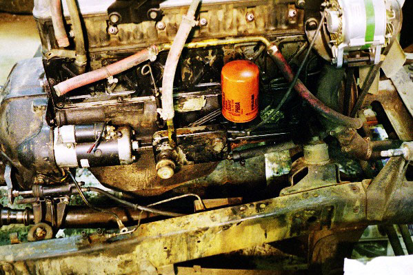 Mid-late summer 2000, a great deal of work is done simply cleaning everything up. The gunga (old grease/oil/dirt) is exposed now that the cowl is off, and there is a lot of evenings and weekends spent just cleaning everything up prior to pulling the engine and drivetrain and starting on sand blasting the frame.