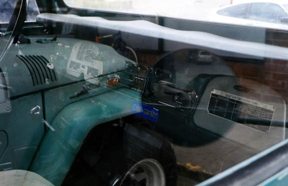 On my way up to photograph Roberta's rig, I saw this FJ40 in the 7-11 parking lot. It looks like a 1970 or '71. One of the things that caught my interest is the way the dash was modified to accept a radio. The knobs have been moved and the install looks very stock, even though there was no cutout in the dash for a radio until several years later. The reflection in the side window is of my '71 '40.