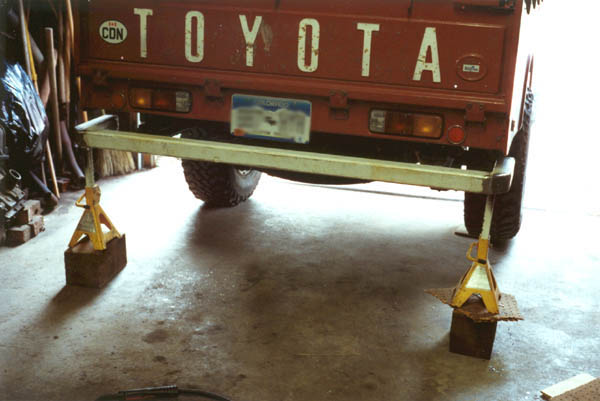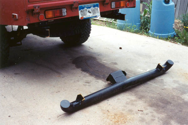 This whole thing started when I put a ton and a half of rocks and dirt into the back of my new-to-me 1978 FJ45. I never really liked the way the tow hitch hung down. I backed up into my upper driveway, it dug into the ground and I tweaked it. You can see how it's bent in the photo below: