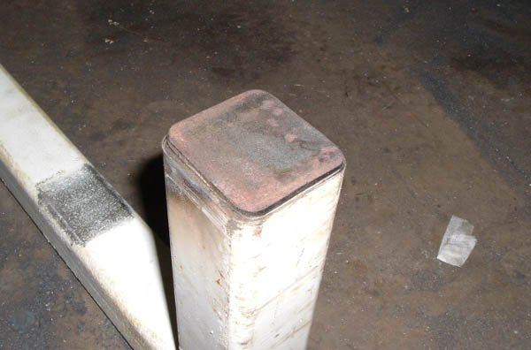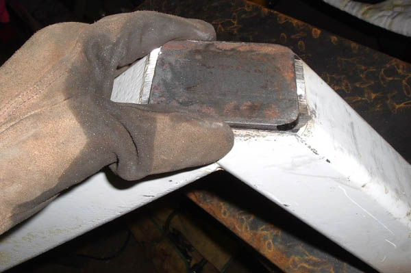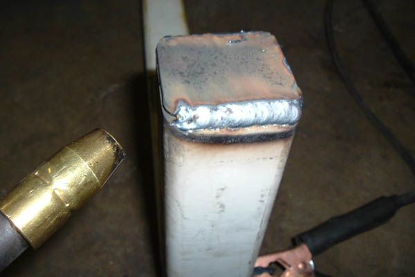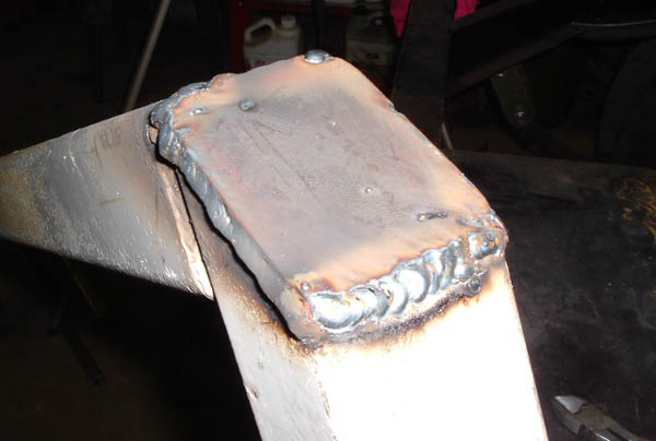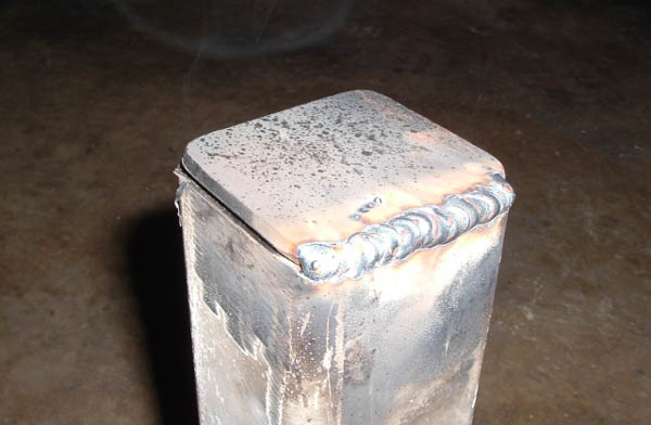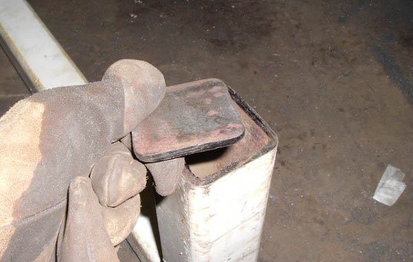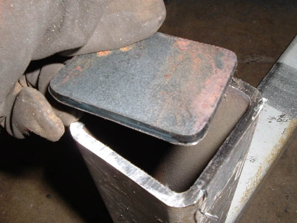 Next I cut some pieces of 1/4" thick steel to cap the ends. Cutting it a little smaller than the cut allowed plenty of surface to get a nice bead with the MIG and get very good penetration.