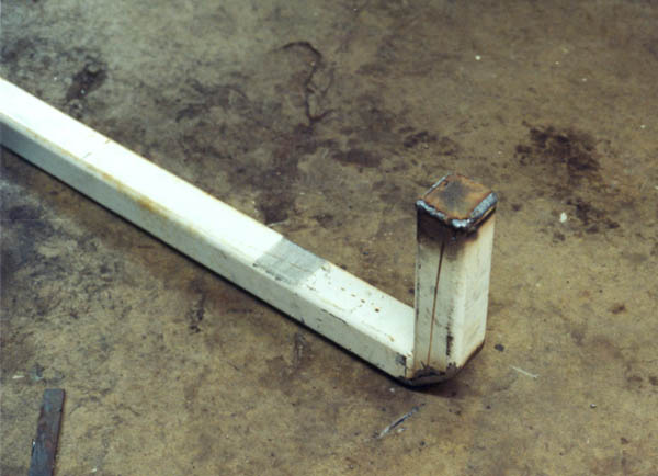 I still had the old mine-spec. headache bar I had cut off of my 1997 HZJ75. It was nice 4" square tube and was already the right width for a cruiser. I took the tractor lights off, and proceeded to cut the corners at a 45° angle, and cut off the inner tubing.
