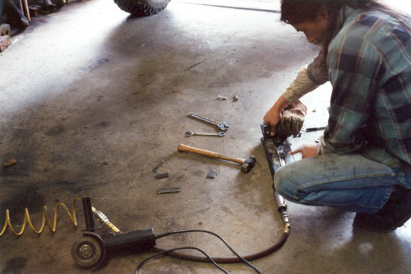 Out came the sawzall, and soon the old tube style bumper is lying on the ground. The old mounts are still attached, but soon you'll see how they will need to be modified to fit properly.