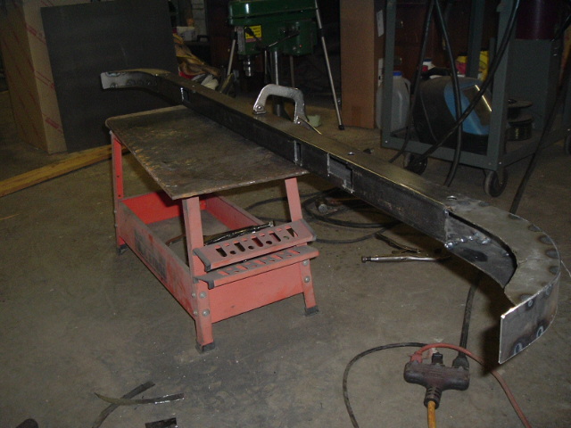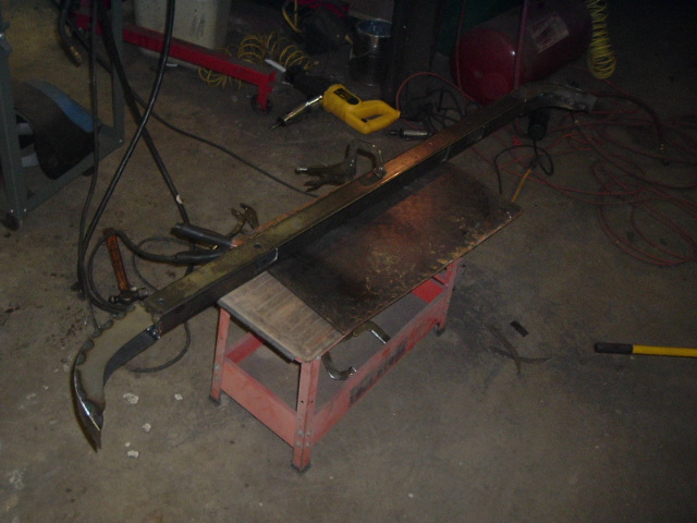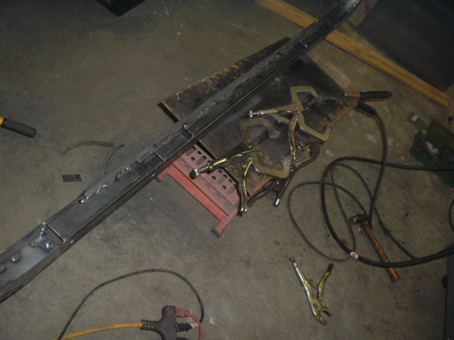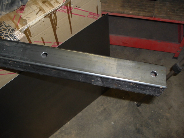 Below are some different angles of the completed channel. In the (porrly-lit) shot on the right, you can see where I added a length of 1/2" angle iron, to make sure that there would be ample area to weld the rotted rear of the bed to.