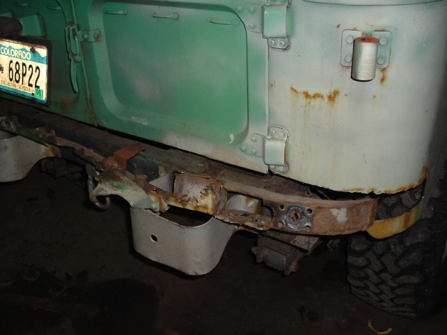 The 71 is also my trail rig, and each year I have to prep it for Cruise Moab. Every year, it seems I have some kind of last-minute wrenching project before Moab. This year, I vowed to fix the rusted rear sill. Ian had given me a section of 2x2 square tube at the packing party a couple years ago, and last year at Moab, Bob Brown, who was following me on a trail, noted that every time I went over a bump, he could see air between the rear of my body and the frame crossmember.