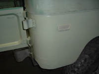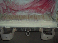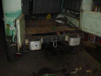 As with the body mount access, I needed a way to get at the spare carrier latch fasteners. I thought of any number of possible ways to do this, from trying to weld nuts on the back, to making a plate that could be adjusted around with the nuts weled to it, to welding another plate on the inside that could be directly threaded. In the end, I simply drilled holes for the bolts which were slightly large than the bolt diameter, and then cut access holes in the rear. The idea is that the oversize holes would give me a little adjustment for the location of the latch, and the access holes would allow me to get a socket into the other side of the fasteners.