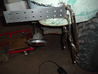 First, I measured exactly where the body mounts were on the rear frame crossmember on both the 71 and the 76. Then I drilled 1/2" holes, centered on the 2x2.