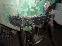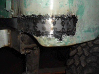 Below, you can see where the rear of the bed is welded to the new sill. It was this step where I was glad I had added that extra section of 1/2" angle iron.