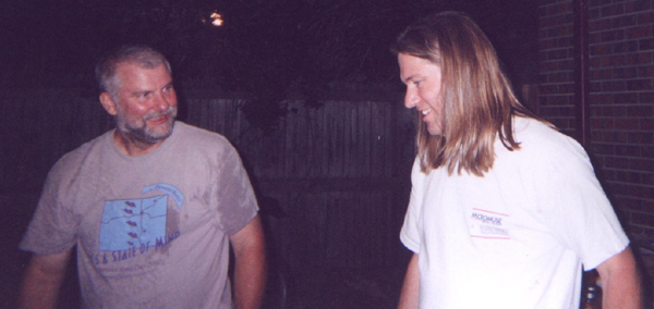 Tom and Mark grew up in Louisiana, and learned all about tasty crawdads. When they moved to Colorado many years ago, they discovered that there's lots of 'em here too, nice big ones! It starts out with Tom and Mark setting traps for the crawdads in local reserviors. They go out every evening and tranfer the keepers into holding pens under water and toss the little ones back.