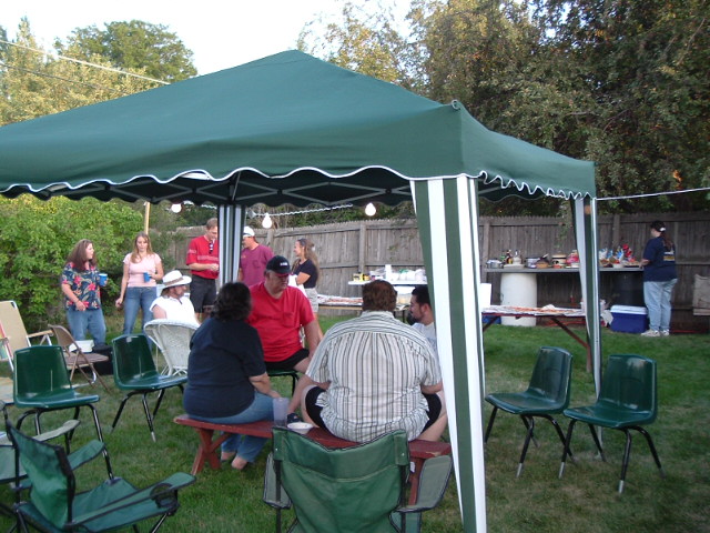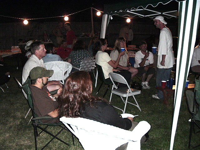 Notice the couch and the cover in the backyard. Before the evening was out, these would all be occupied. Mark, Tom and Roscoe really know how to put on a great party!